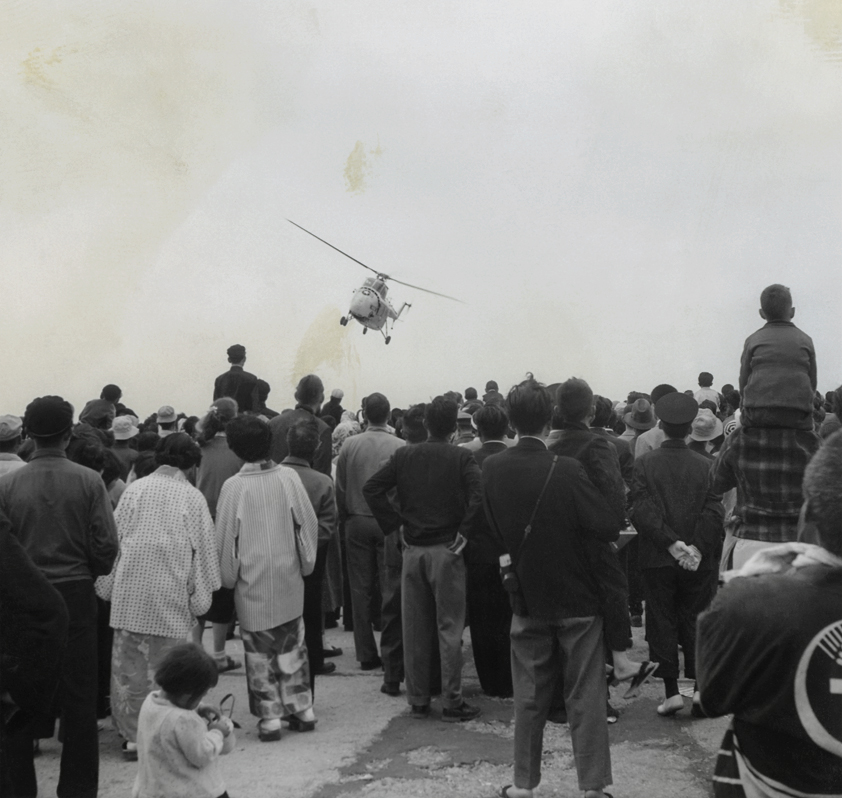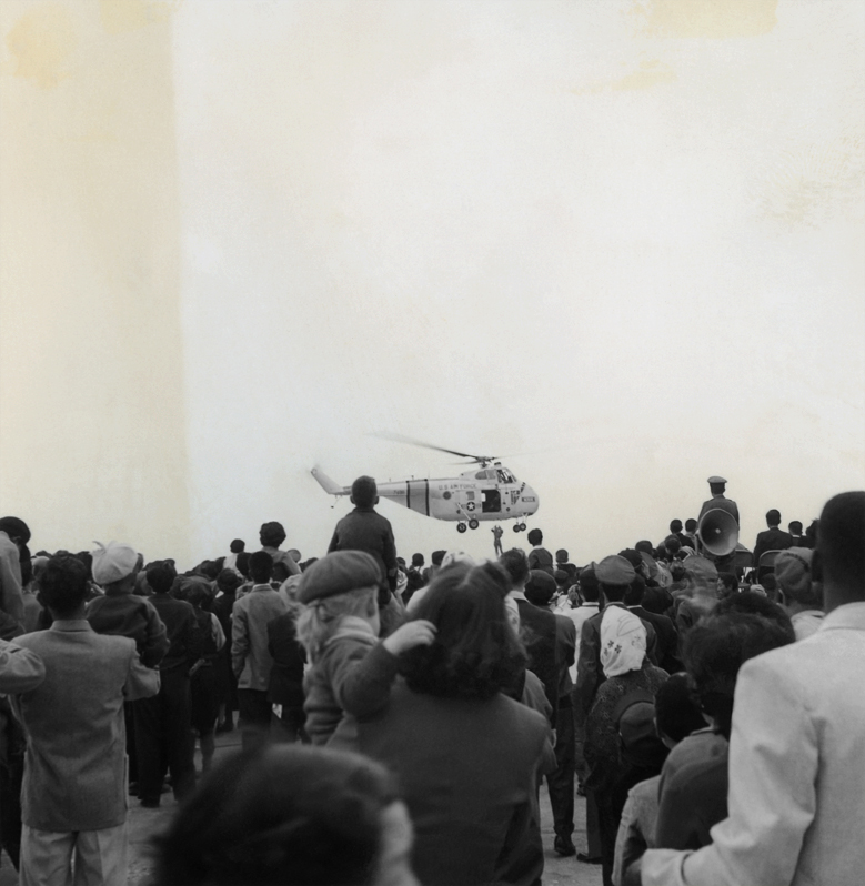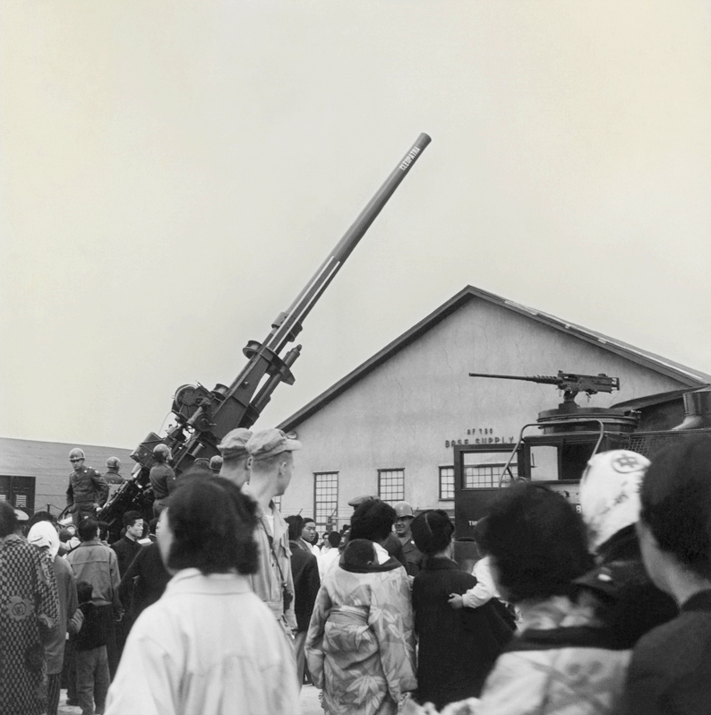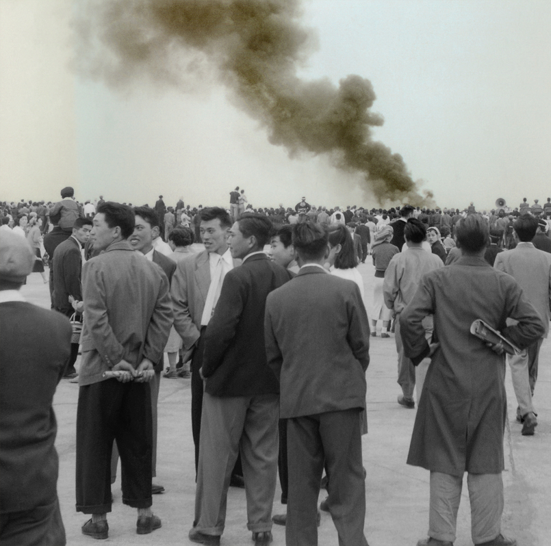 Shot in Japan, all of the images come from two 1950s photography albums, one of which has a large drawing of a USAF bomber on it’s cover. The images were almost lost they were so dirty, scratched and deteriorated. It has taken me four long years to scan, digitally clean and restore the images, heightening the colour already present in the original photographs.